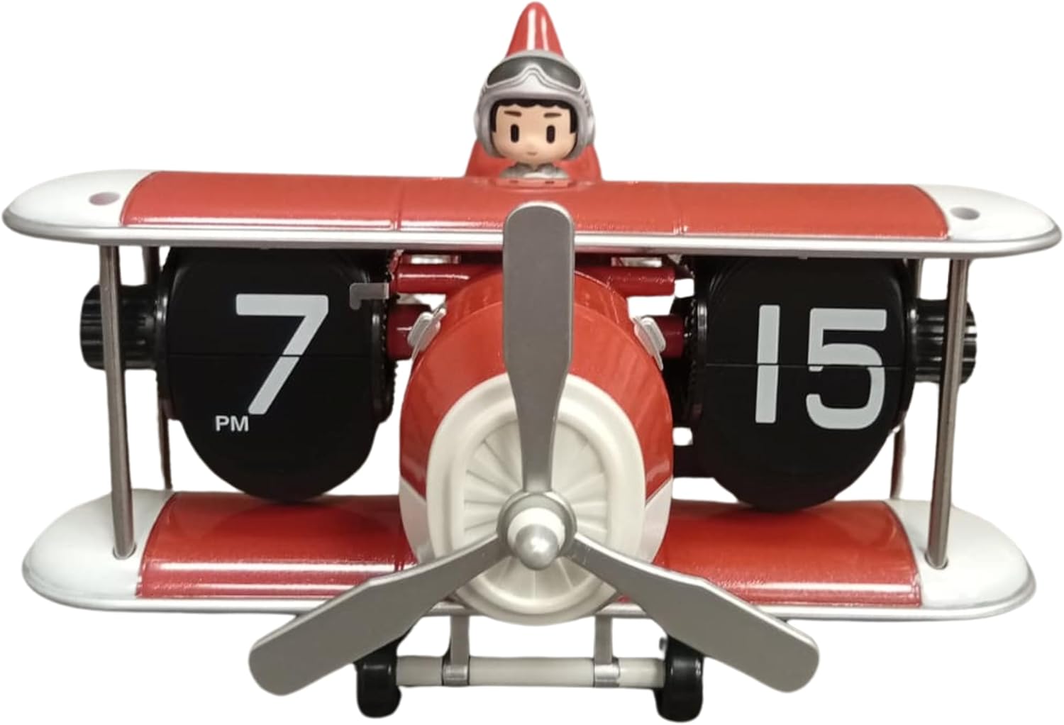 Inspired by the charm of classic biplanes, this retro flip clock combines aviation nostalgia with practical timekeeping. Featuring a playful pilot figure and spinning propeller design, it stands out as both a working clock and a decorative collectible.