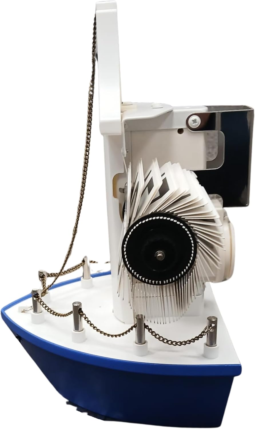 This nautical themed flip clock features a boat shaped hull chain railings and a tall mast combined with a smooth retro flip panel mechanism. It can be placed on desks shelves or mounted on a wall using the built in rear slot.