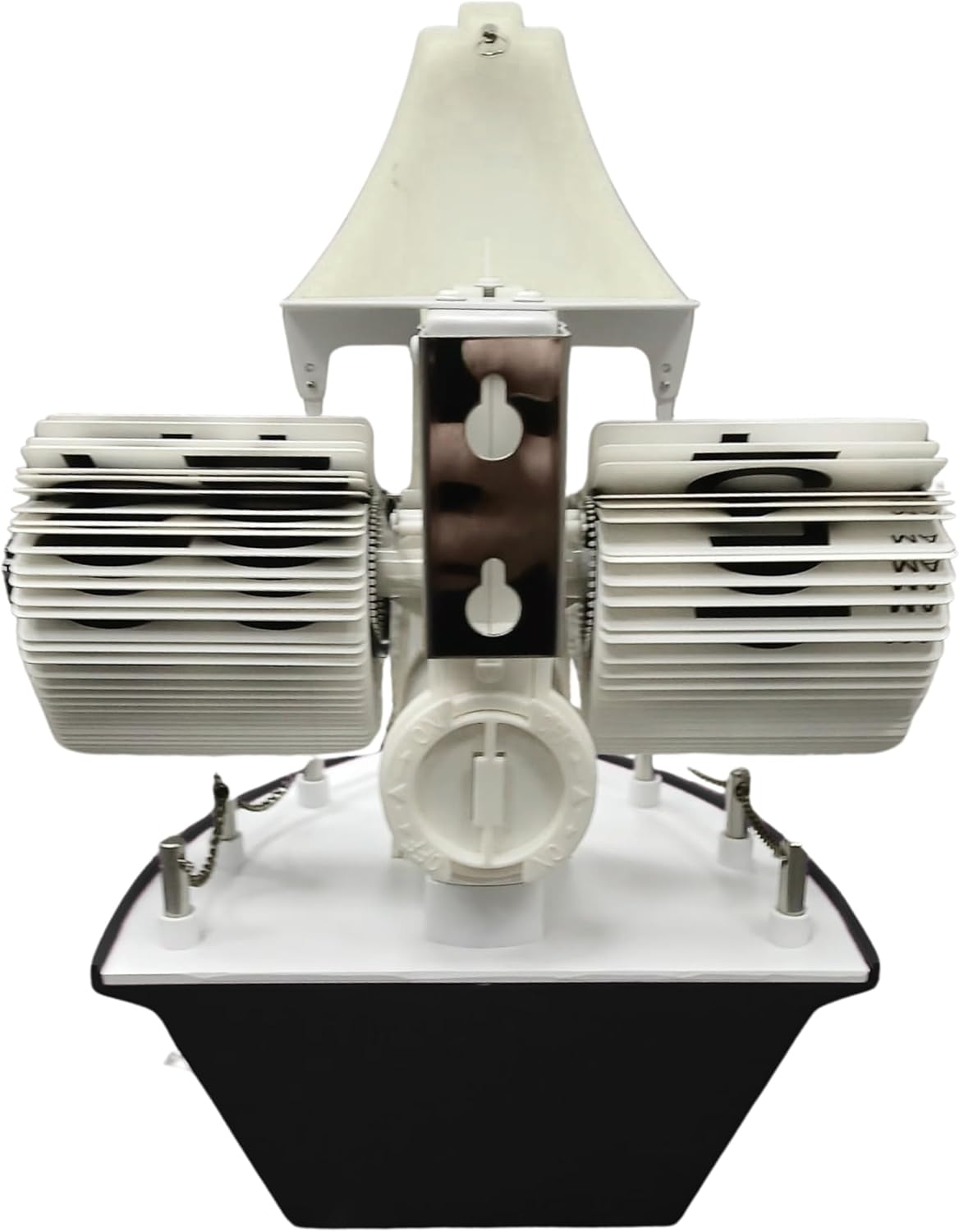 - Features an automatic flip panel mechanism where black and white number cards drop smoothly each minute and hour providing excellent readability from any angle supported by a clear AM PM indicator that ensures easy time tracking throughout the day.